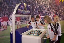 Outfitters of the team headquarters of the German, the Spanish and the English national teams: However, not only passengers of the rail operator Deutsche Bahn can look forward to exciting matches against ‘Star Kick’, but also the German national team – since the Gauselmann Group is one of the outfitters of the German team headquarters in Berlin and will provide disport and diversion with an attractive entertainment park there. Together with the UK-partner Sega the Gauselmann Group is also one of the outfitters of the English national team headquarter. Supplier for the Volunteer Program in the Volunteer Centers: to offer attractive leisure time activities to the dedicated volunteers from everywhere in the world, the Gauselmann Group will supply the leisure time areas of each of the venues with a fun park – and of course, where everything centers around football, apart from other innovative sports games such as Kicker, Darts, and Merkur Trendy the ‘Star Kick’ mustn’t miss.