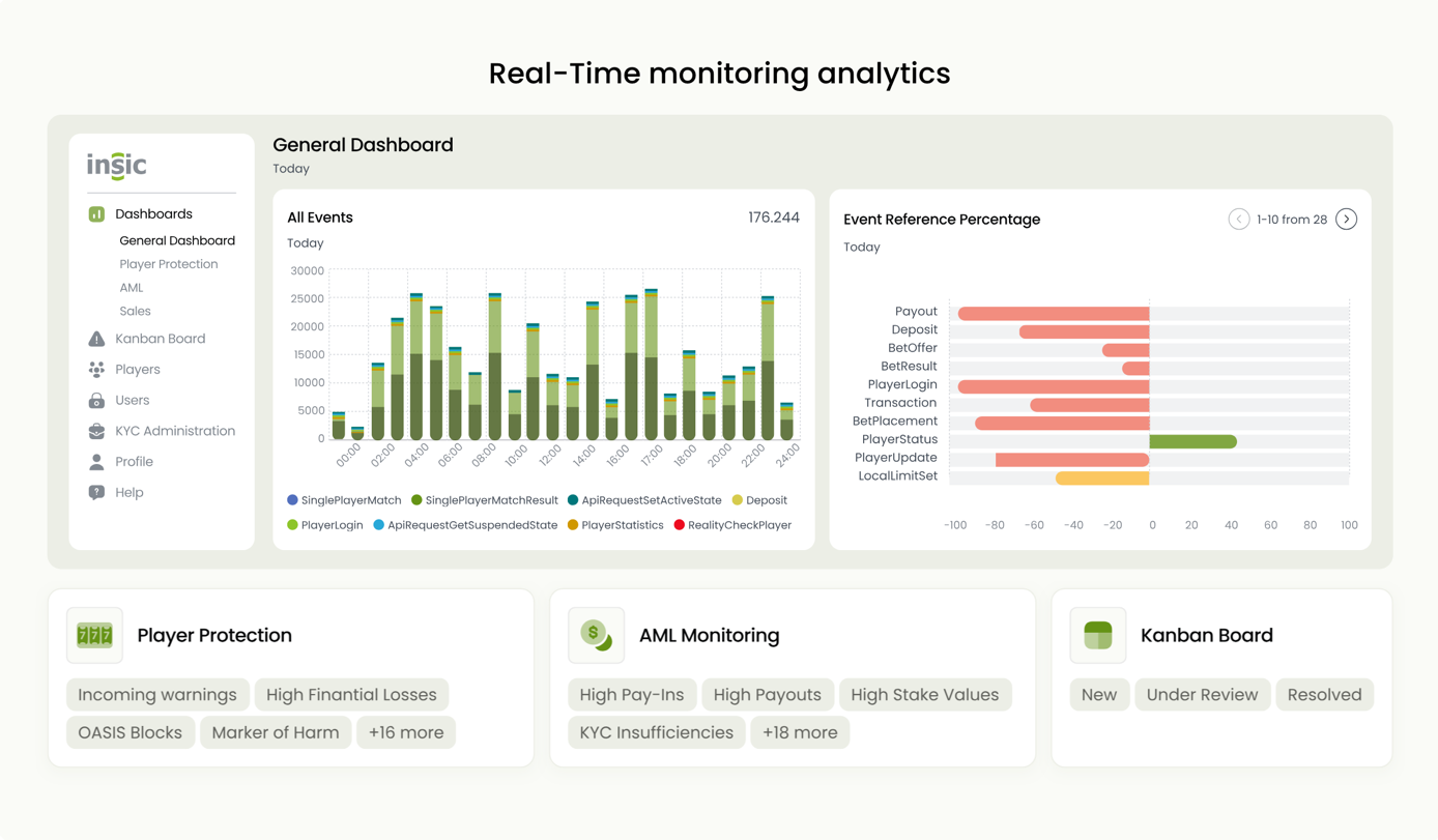Since 2024, insic has been the first provider on the market to analyse data transmitted in real time via SAFE to the authorities, to visualise it in modern dashboards for player protection and AML, to link it to its own online risk management system for franchise organisations, and to interpret the results in line with the latest AI standards.