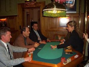 Innerhalb einer weiteren emotionsgeladenen Stunde waren dann die endgültigen Sieger ermittelt: Platz 1 belegte Herr Tsauzidis mit 2.650 Euro. Der Zweitplatzierte, Herr Scholz, ging mit 1.610 Euro aus dem Pokerturnier, holte aber in der „Over All“-Wertung mächtig auf, so dass er dem Führenden jetzt knapp auf den Fersen ist. Der Drittplazierte, Herr Gruner, konnte sich über 1.050 Euro freuen. Insgesamt waren 9 Teilnehmer des Pokerturniers “in the money“.