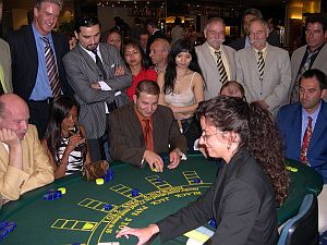 Dicht gedrängt standen die Black-Jack-Spieler um den Tisch bei dem mit fetten Buchstaben Check-In stand. Jeder wollte noch einen der freien Restplätze ergattern, die es gab. Insgesamt nahmen 84 Teilnehmer an dem großen Turnier teil, bei dem die Spielbank Stuttgart ein zusätzliches Preisgeld von 5000,– Euro beisteuerte.