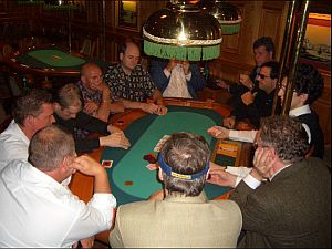 Hochspannung an einem der gestrigen Turniertische<br> in der Spielbank Wiesbaden Die Teilnehmer des gestrigen Poker-Turniers in der Spielbank Wiesbaden standen regelrecht unter Strom, bis sie die ersten Hände spielen konnten. Nachdem endlich alle ihre zugeteilten Plätze eingenommen hatten, startete die Turnierleitung das „Omaha-Pot-Limit-Turnier“ pünktlich um 20:00 Uhr. Die erfahrene Poker-Crew sah anfangs ein sehr offensives Spiel. „Bad Beats“ wurden mit lauten Seufzern der Verlierer hingenommen.