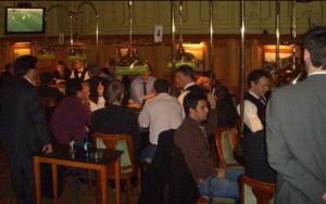 Voller Zuversicht starteten die Turnierteilnehmer das Spiel und schonten sich dabei gegenseitig nicht. Der erste Tisch fiel schon nach kurzer Zeit und wurde, wie alle weiteren freiwerdenden Tische auch, sofort mit Cash-Game belegt. Die im Turnierverlauf wachsende Spannung war nicht zuletzt auf viele doch zum Teil sehr skurrile Hände zurückzuführen. So gingen gleichzeitig vier Spieler mit 7 und Bube, As und Dame, Paar Könige und 3 und Bube All-In. Im Flop dann As, Dame und 3, im Turn der Bube. Doch erst der River mit dem König brachte dann endlich die Entscheidung: Die von Beginn an favorisierten Könige gingen als Sieger aus der Schlacht. Nachdem einige solcher nervenaufreibender Fights ausgetragen worden waren und sich die Gemüter gerade ein wenig beruhigt hatten, folgte dann die eigentliche Krönung des Abends: Der Start des Final-Tables um 22:30 Uhr.