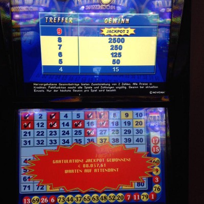 Am späten Montagabend ertönte im Automatenspiel die JackPot-Fanfare. Ein Ehepaar knackte den Bingo-JackPot (9 von 9) und gewann auf einen Schlag 88.037,16 €. Eigentlich waren Sie schon im Aufbruch, doch die glückliche Gewinnerin wollte Fortuna noch einmal herausfordern. Eine gute Entscheidung, wie sich herausstellte. Die Gaststättenbesitzerin möchte sich mit dem Geldsegen den Traum von einem neuen Auto erfüllen.