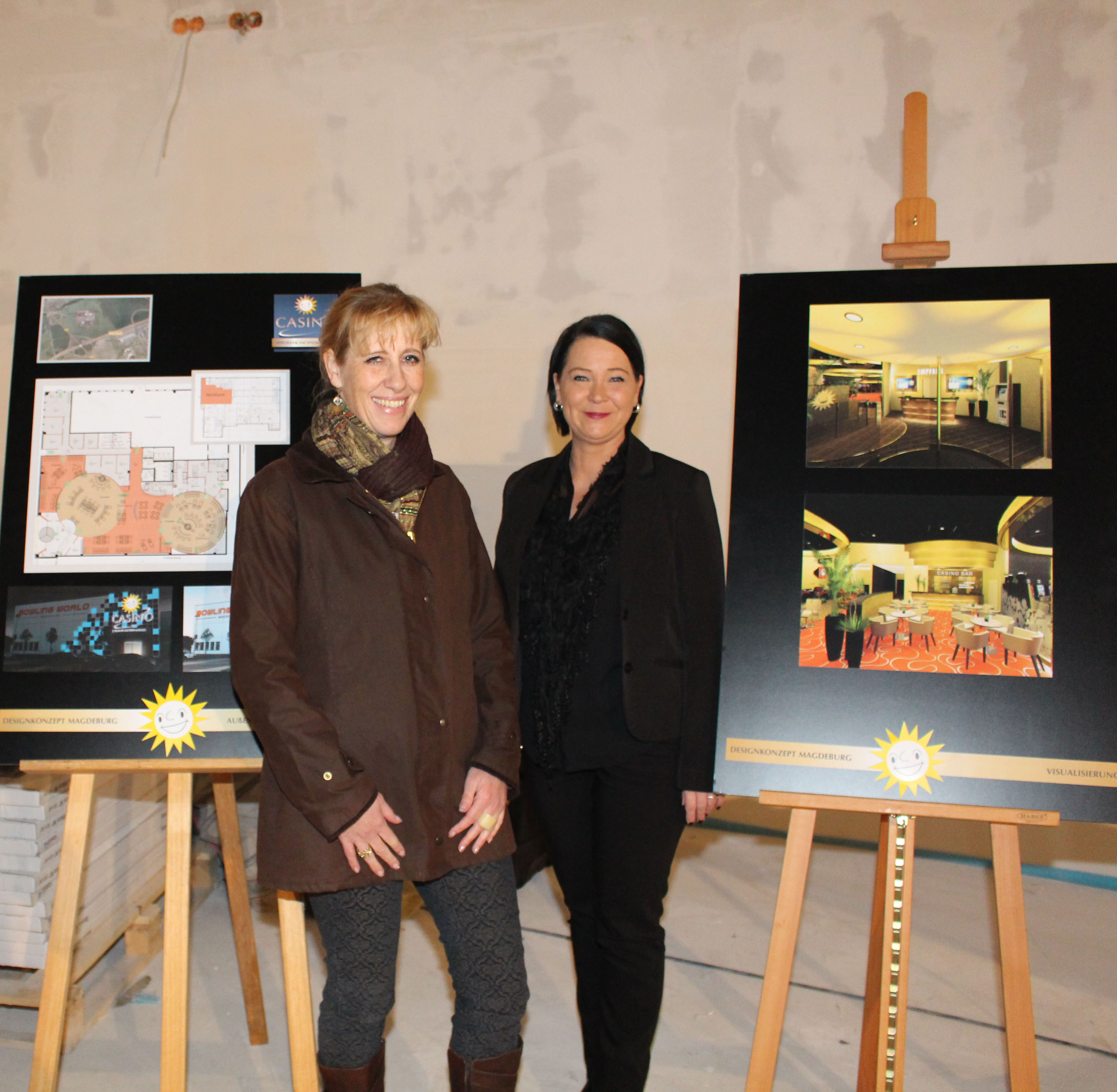 Das Designkonzept der neuen Spielbank ist nach dem Ort „Carmel“ in Kalifornien benannt und wurde von Diplom-Innenarchitektin Susanne Rasspe entwickelt. Die Farben und Formen des Konzepts greifen mit Wellenlinien, Goldtönen und rauen Oberflächen die Natur an der Westküste der USA auf. „Neben der Erstellung des Designkonzepts, haben wir hier natürlich auch einen enormen baulichen Aufwand. Insgesamt verlegen wir 40 Kilometer Kabel, verstreichen 800 Liter Farbe, verwenden 2500 Kilogramm Spachtelmasse und 500 Kilogramm Kleber“, sagt Susanne Rasspe. Die Investitionskosten am Standort Magdeburg betragen etwa 4,7 Millionen Euro.