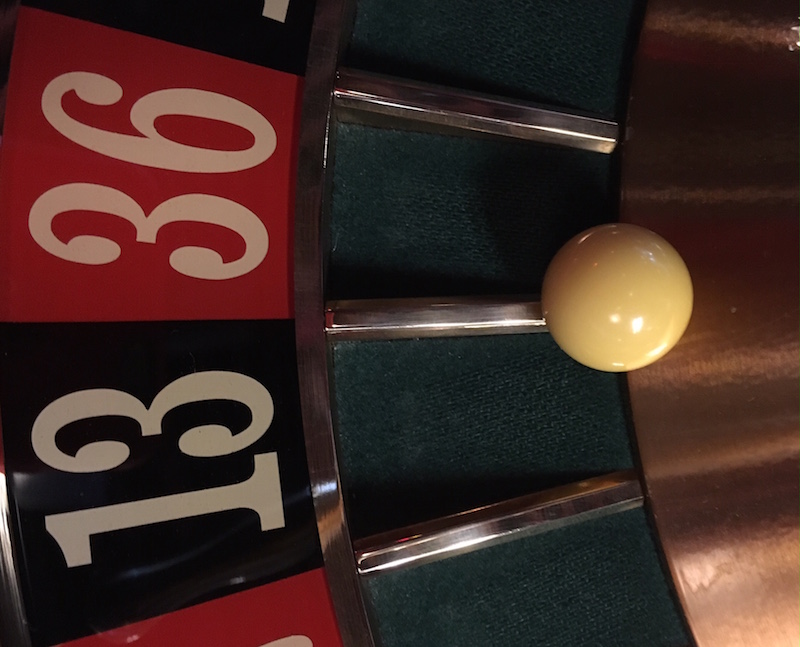 Im konkreten Fall konnte sich die Kugel nicht zwischen den Zahlen 13 und 36 entscheiden. Sie blieb auf dem Steg zwischen diesen beiden Zahlen liegen.