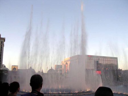 Danach verließen wir das Hotel und gingen über Strip zur anderen Seite Richtung Bellagio. An dem riesigen Teich davor staunten wir über die fantastische Wasser- und Lichtshow.