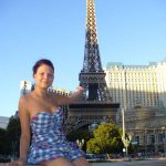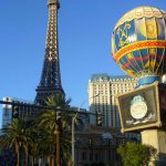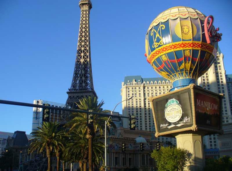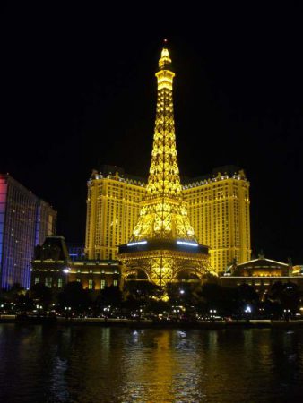 Wir genossen den Blick zum Hotel Paris Paris mit dem originalgetreuen Eifelturm im Verhältnis 1:2. Auch das eigene Hotel wirkt auch aus der Entfernung gewaltig.
