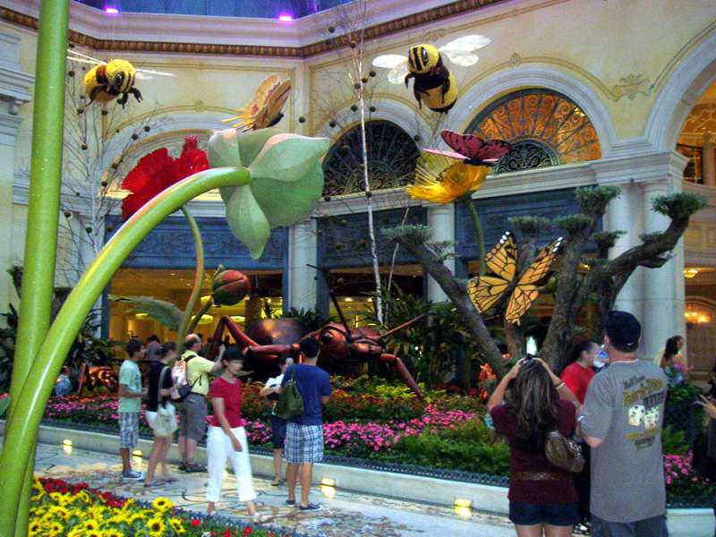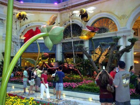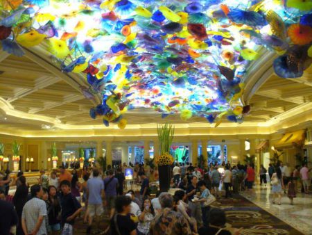 Im Bellagio herrscht Luxus pur. Die Eingangshalle ist ein Anziehungspunkt für Touristen, obwohl es auf europäische Augen kitschig wirkt.