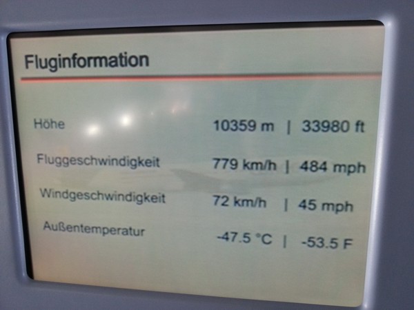 Gebucht habe ich Hotel und Flug bereits im Februar, weil günstige Angebote in der Messewoche Mangelware sind. Los ging die Reise es am 22.09.13 um 06:41 Uhr mit dem Zug von Bielefeld nach Frankfurt. Um 12.30h mit 30 Minuten Verspätung ging dann der Flieger auf den 11,5stündigen anstrengenden Flug. Wenn ich 2010 irgendwas gelernt habe, dann die Erkenntnis, dass die bedrückende Enge der Economy-Klasse für meine Körpergröße ungeeignet ist. Also waren je Strecke 250 Euro Aufpreis für „Economy Plus“ nötig, wofür man 15cm mehr Abstand zur Sitzlehne des Vordermannes bekam. Das reichte genau aus, um meine Beine in den Sitz einzuparken. Wirklich komfortabel wäre erst die Businessklasse, doch dafür verlangte die Fluglinie nochmal 500 Euro je Flug mehr, was mein Budget sprengte.