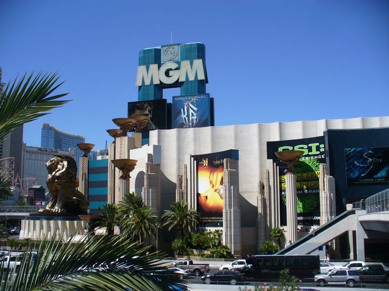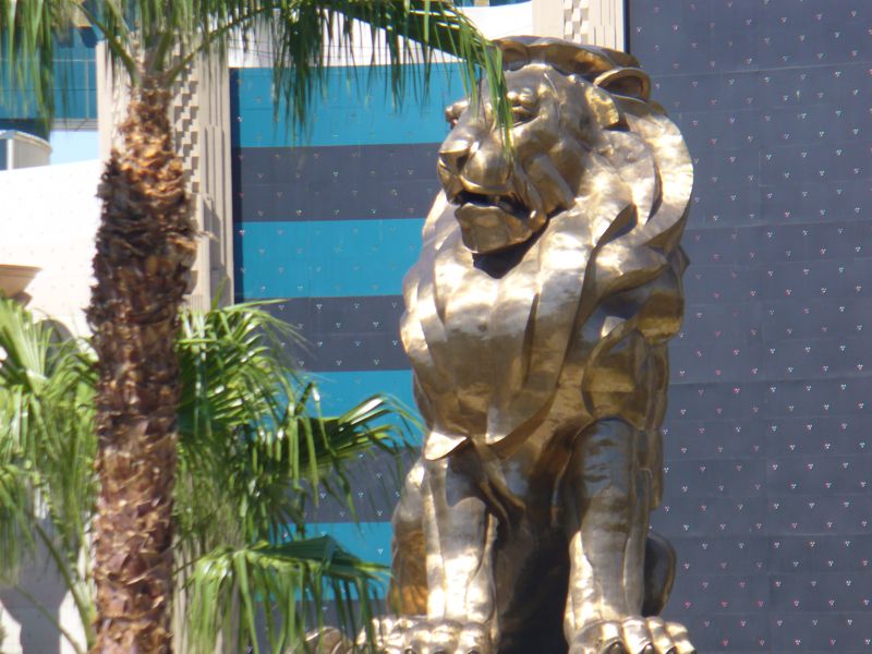 Ein paar hundert Meter weiter ist das größte Hotelressort der Welt, das MGM Grand, mit über 7.000 Zimmern. Wie alle Hotelanlagen beherbergt es auch ganze Einkaufsstraßen und ein riesiges, mehrere Fußballfelder großes, Casino.