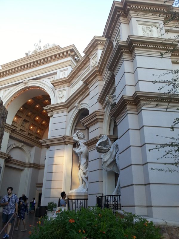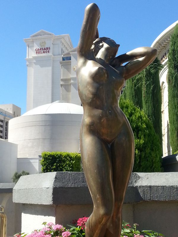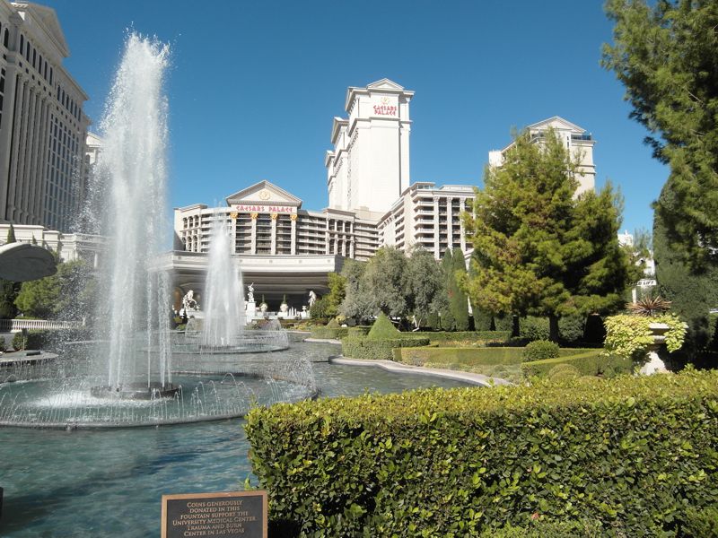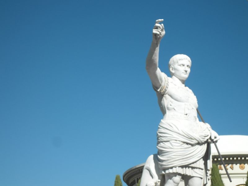 Wieder gegenüber eines der edelsten Häuser der Stand, das imposante Caesars Palace mit mehreren schlanken hohen Hoteltürmen, einer imposanten Außenanlage im altrömischen Stil und einigen neckischen Statuen.