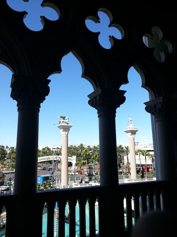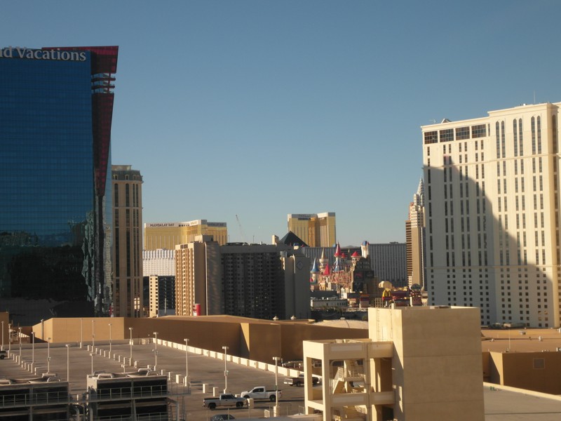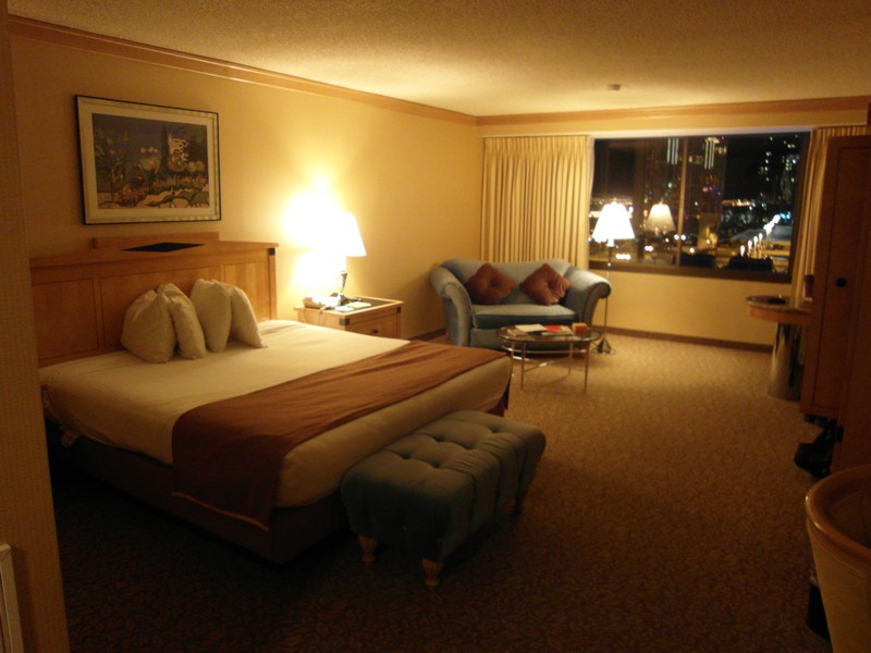 Mein Hotel war das Bally’s zentral am Strip gegenüber dem Bellagio und Ceasars Palace. Nicht High-End Qualität, aber komfortabel mit großen, ruhigen Zimmern. Man quartierte mich direkt am Strip ein, was manchen begeistern würde, doch die zehnspurige Straße ist beständig so laut, dass ich Sorge um meinen Schlaf hatte. Also bat ich um ein anderes Zimmer und fand mich nach hinten zum Parkhaus wieder, und sah den Strip nur noch aus der Ferne. Hauptsache ruhig, ich war zufrieden. Das Bally’s war früher das MGM Grand bis zu dessen Neubau.