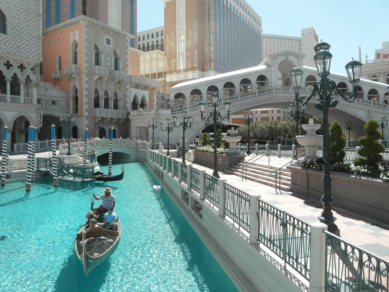 Daneben das bombastische Venetian, wo man sich innen und außen wie in Venedig fühlt. Sogar Gondel fahren kann mit italienischem Gesang (für 80 Dollar/Person).