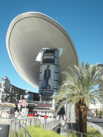 Weiter den Strip entlang die „Fashion Show“, ein großes Einkaufszentrum vor allem für Mode. Ein riesiges, freischwebend wirkendes Dach wirkt bei der vorherrschend trockenen Witterung in Las Vegas etwas deplatziert.