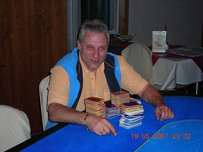 Als Sieger ging der Saarländer Jürgen Paoletti aus dem Turnier hervor und freute sich sichtlich über soviele Jetons.
