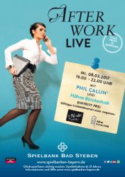 Wollen Sie mal wieder in alten Zeiten schwelgen und die Klassiker von Genesis oder Phil Collins hören? Kein Problem, am 8. März gastiert die Tribute-Band Phil Callin‘ bei der After Work Live in der Spielbank Bad Steben. Die fünf Musiker lieben die Songs der englischen Rockgruppe und des englischen Sängers und Schlagzeugers wegen der tiefgründigen Texte gepaart mit anspruchsvollen tollen Melodien. Genießen Sie mit uns den Sound der großen Welthits, wie „In The Air Tonight“ oder „Another Day in Paradise“. Phil Callin‘ lässt garantiert keine Wünsche offen.