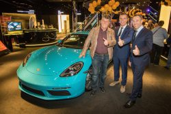 Vergangenen Freitag machte Wilhelm K. aus Duisburg Luftsprünge. Als erster Gewinner der dreiwöchigen Jubiläumsaktion steckte er den Schlüssel in das Zündschloss – links vom Lenkrad – und ließ den Motor kurz aufheulen. „Ich tausche meinen Opel gerne gegen den neuen Cayman ein“, so der strahlende Triumphator des Gefährts in der Sonderfarbe Miami-Blau.