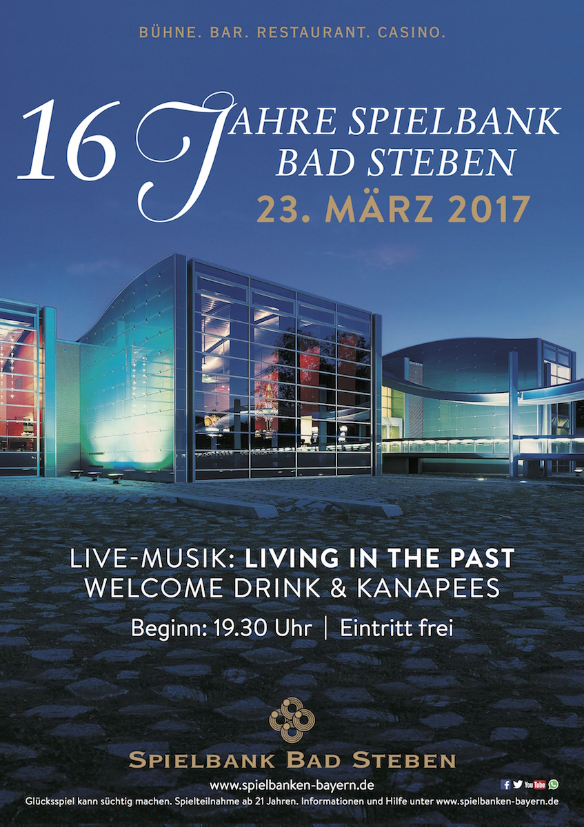 Zelebrieren Sie mit uns am Donnerstag, den 23. März 2017 den 16. Spielbank Geburtstag, mit Welcome-Drink, feinen Köstlichkeiten aus dem Restaurant, einer Tombola mit attraktiven Geldpreisen und natürlich Live-Musik.