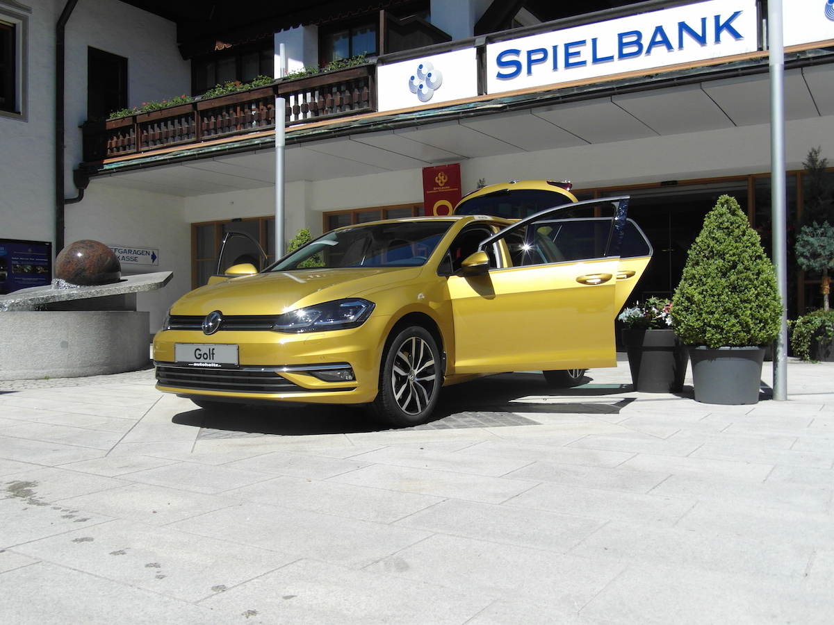 Fortuna hat wieder einmal in der Spielbank Garmisch-Partenkirchen vorbeigeschaut und einen sonnengelben VW Golf Comfortline, 1,6 TDI mit über 100 PS abgegeben.