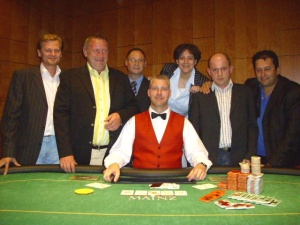 Mainz, Fronleichnam 2007. Das Fronleichnams-Pokerturnier in der Spielbank Mainz lockte etliche Profis aus der Umgebung an. 500 Euro Buy-In von 23 Teilnehmern und ein Pott mit 11.500 Euro versprachen ein hochklassiges Turnier.