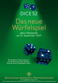 München – Im Herbst fallen nicht nur die Blätter, sondern auch die Würfel! Denn ab dem 15. September geht in der Spielbank Garmisch-Partenkirchen das neue Würfelspiel Dice52 an den Start.