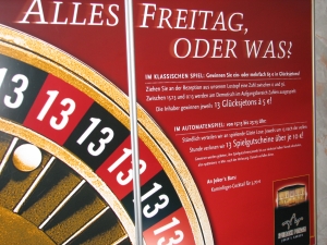 „Alles Freitag – oder was?“ – unter diesem Motto laden in diesem Jahr schon zum zweiten Mal die Brandenburgischen Spielbanken in Cottbus, Frankfurt (Oder) und Potsdam zu zusätzlichen Aktionen rund um die Zahl „13“ am Freitag, den 13. Juli 2007, ein. Und Glücksgöttin Fortuna soll ja angeblich an diesem Tag außerordentlich gerne mit den Gästen der Spielbanken flirten…!