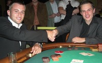 Als nur noch drei Spieler im Turnier waren, einigte man sich auf einen weiteren Deal. Jeder erhielt 800,- Euro, die verbleibenden 780,- € wurden, entsprechend dem Stack, in 500,- €, 280,- € und null Euro aufgeteilt. Mit diesem Deal war jeder mehr als zufrieden und so schied der dritte, Herr Trgo, relativ schnell aus und freute sich über 800,- €.