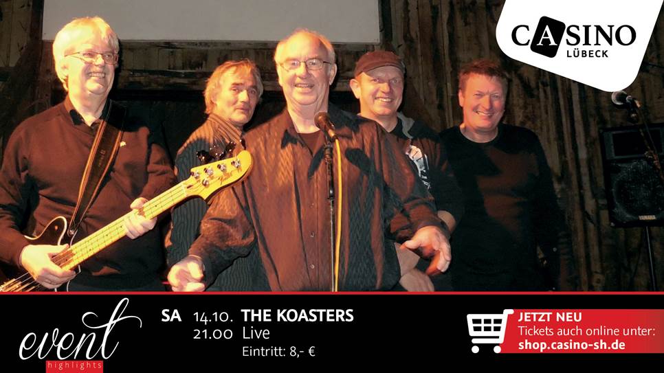 Es wird wieder gerockt im Casino Lübeck. Die Kult-Band „The Koasters“ geben sich die Ehre……….Show-Beginn ist ab 21 Uhr.