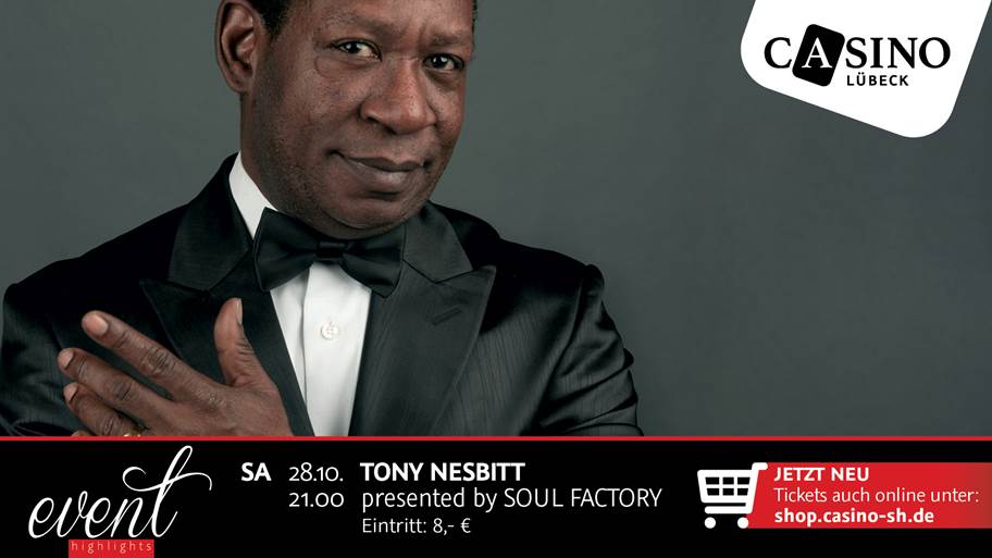 TONY NESBITT und SOUL FACTORY sind nun zum zweiten Mal Gast im CASINO Lübeck und verschmelzen zu einem einzigartigem Erlebnis. Gemeinsam präsentieren sie ein außergewöhnliches Repertoire aus weltbekannten Songs der Motown-Ära.