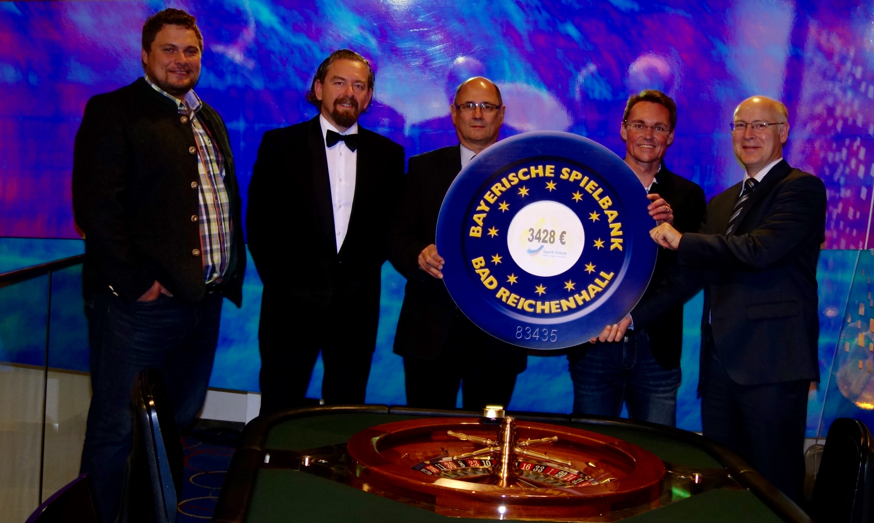Die Spielbank Bad Reichenhall war am Rahmenprogramm der Veranstaltung mit zwei Roulette-Tischen sowie einem Black Jack Tisch vertreten. Die Einnahmen, die an diesem Abend erzielt wurden, gingen zu 100 Prozent an die Nachwuchssportler der Region. Am vergangenen Donnerstag, den 2. November fand nun die Übergabe des Spendenjetons, in Höhe von 3.428 Euro, an Herrn Alexander Resch, Vorstand Leistungsspot-Management Bob- und Schlittenverband Deutschland, statt.