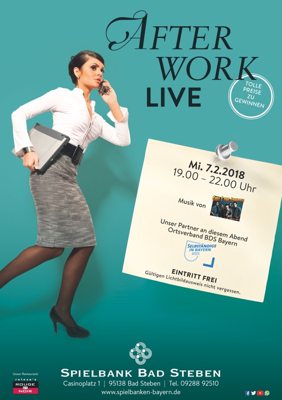 Mit tollem Sound und Informationen aus erster Hand über das Netzwerk für Unternehmen und Selbständige, dem Ortsverband Hof des Bundes der Selbständigen, startet am kommenden Mittwoch, 7. Februar, das zweite After Work Live-Event in diesem Jahr in der Spielbank. Von 19 Uhr bis 22 Uhr spielen „Gery & the Johnboys“ einwandfreien Rock’n’Roll der 50er bis 70er-Jahre. Dazu gibt es umfassendes Fachwissen vom regionalen Partner Bund der Selbständigen.