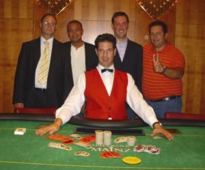 Bild: Floorman Thomas Lautenschläger, Windy Ramel (2.), Jens Roth (1.), Guiseppe Bruno (4.) (v.l.n.r.), Dealer Raymond Krug