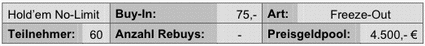 Cash-Games an allen Turniertagen (So-Do) ab 17 Uhr, Fr + Sa ab 19:30 Uhr.