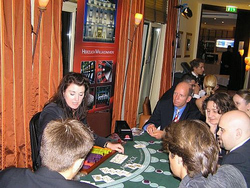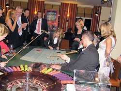 Hamburg, 03. 09.2007. Inzwischen ist es Tradition: Wenn der Hamburger Presseclub zur Nacht der Medien“ lädt, ist die Spielbank Hamburg dabei. Über 1200 Gäste waren dieses Jahr auf den vornehmen Blankeneser Süllberg ins gleichnamige Hotel gekommen, um sich zu treffen, zu essen, zu plaudern, zu tanzen – und zu spielen. An einem Roulette- und zwei Black Jack-Tischen ging es dabei für die einen nur um den Spaß. Andere jedoch packte der Ehrgeiz, aus den 100 Euro-Spielgeld so viel wie möglich zu machen, um ein Dinner zu Zweit aus der 5-Sterne-Kreation des Süllberg-Chefs Karlheinz Hauser zu gewinnen.