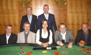 Bild: Alexander Schauermann (5.), Floorman Oliver Gutermilch, sitzend: Andreas Schauermann (4.), Ralf Bremm (3.), Dealerin Eda Zar, Daniel-Theo Matissek (1.), Juri Kaucher (2.)