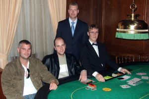 Bild (v.l.n.r.): Turniersieger Thomas Gering, Marc Dötsch (2.), Floorman Oliver Gutermilch, Dealer David Klein