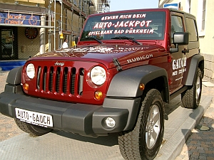 Der neue Gewinn am Mystery-Jackpot Jeep WranglerBad Dürkheim. Ein Stammgast der Spielbank Bad Dürkheim knackte am Wochenende den Auto-Jackpot an der Mystery-Jackpot-Anlage. Die 67-jährige Dame aus Ludwigshafen freute sich riesig über ihren Gewinn. Sie kann es kaum erwarten, bis sie den rasanten Sportwagen, einen Chrysler Crossfire Roadster, mit nach Hause nehmen und mit ihrem nagelneuen Auto ihre ersten Touren durch die Pfalz starten kann.