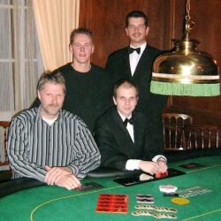 Bild (v.l.n.r.): Turniersieger Bruno Schäfer, Thomas Schäfer (3.), Dealer Gregor Sojka, Floorman Karl Friedrich Mohr