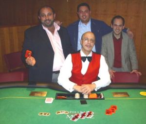 Bild: Vladislav Richter (1.), Valentino Adler (2.), Alp Erginer (3.) und Dealer Ralf Lautenbach