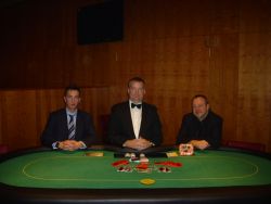 Bild (v.l.n.r.) Turniersieger Klaus Peter Reinhold, Dealer Mitchel Ward, Sascha Adlon (2.)