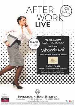 Keinesfalls Mainstream, sondern im wahrsten Sinne des Wortes gute Unterhaltung bieten am Mittwoch, den 10. Juli 2019 die fünf Musiker der Band WhazzNow bei der After Work Live Party. Augenzwinkernd präsentieren sich die vom Jazz geküssten Kerle mit dem Slogan: »strange home-made jazzy tunes«. »Pink Panther« oder »Mission Impossible« – bekannte Filmmusiken geben die Band eine jazzig-rockige Note.