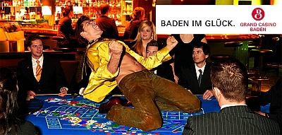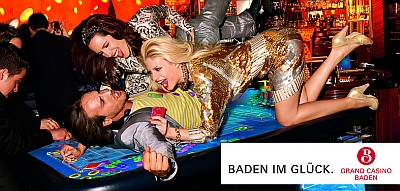 Heute startet die neue Kampagne des Grand Casino Baden mit Plakaten und Inseraten in den Kantonen Zürich und Aargau. Während seit 2006 zur Freude des Publikums in der bisherigen Kampagne Gewinnerinnen und Gewinner mit Badeutensilien im Glück gebadet haben, werden in der Folgekampagne nun die typischen Bilder der Casinowelt auf überraschende Weise mit Siegerposen aus dem Sport kombiniert.