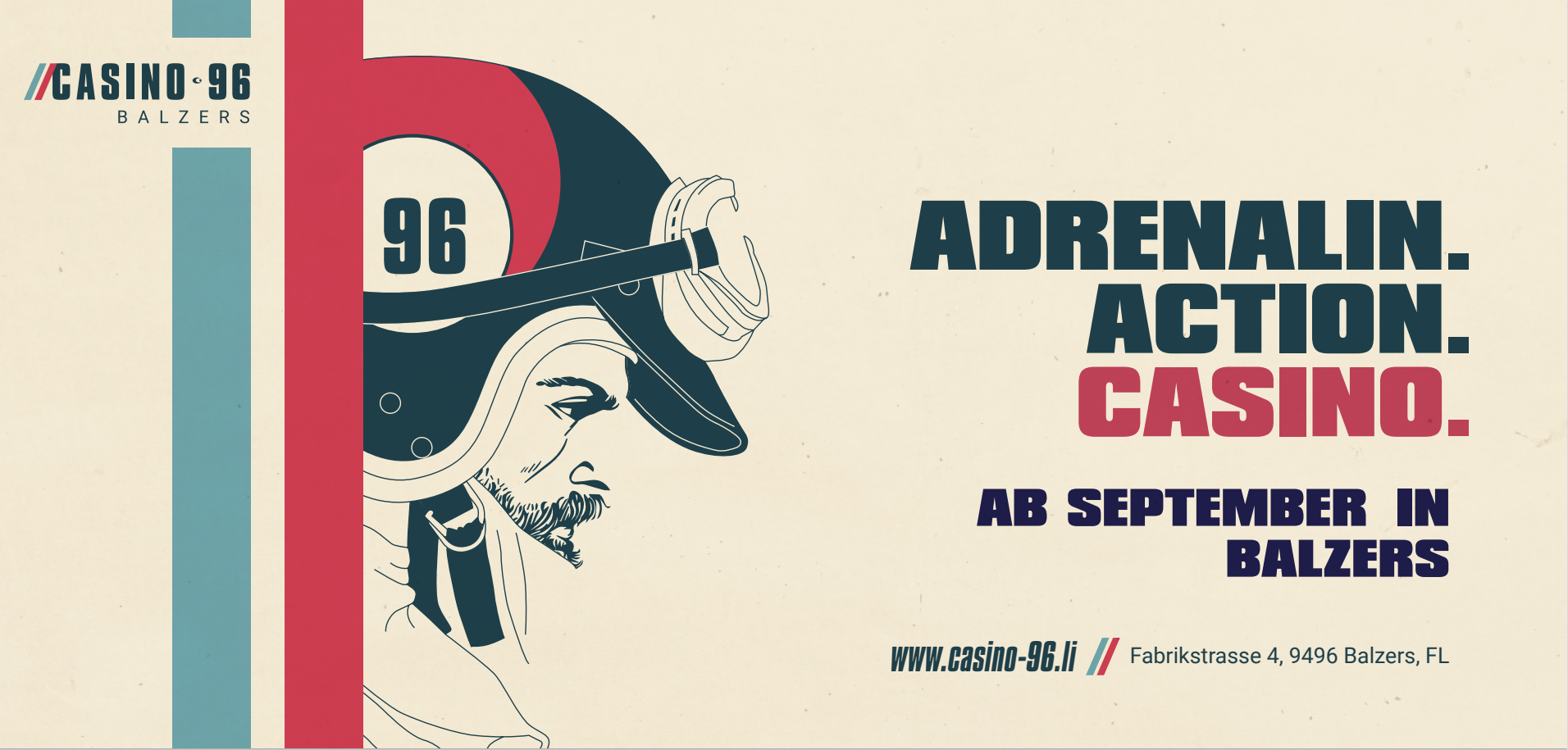Am 18. September 2020 wurde in der südlichsten Gemeinde Balzers das zweite CAI-Casino in Liechtenstein nach dem Casino Schaanwald eröffnet, das seinen Betrieb im Oktober 2017 aufgenommen hat Während Schaanwald im Norden des Landes an der Grenze zu Österreich liegt, befindet sich Balzers ganz im Süden in unmittelbarer Nachbarschaft zur Schweiz. Das Casino 96 ist nur einen Kilometer von der Schweizer A13-Autobahnausfahrt Balzers/Trübbach entfernt. Gratis-Parkplätze stehen in der Tiefgarage sowie ab 18 Uhr auf den Parkplätzen der benachbarten Firma Oerlikon zur Verfügung. Das Casino ist auch mit dem öffentlichen Verkehr bequem zu erreichen: eine Liemobil-Haltestelle befindet sich direkt vor dem Gebäude.