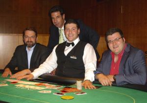 Bild: sitzend v.l.n.r. Daniel Wichmann (1.), Dealer Yunuz Koparan, Markus Kemler (2.) sowie Floorman Raymond Krug