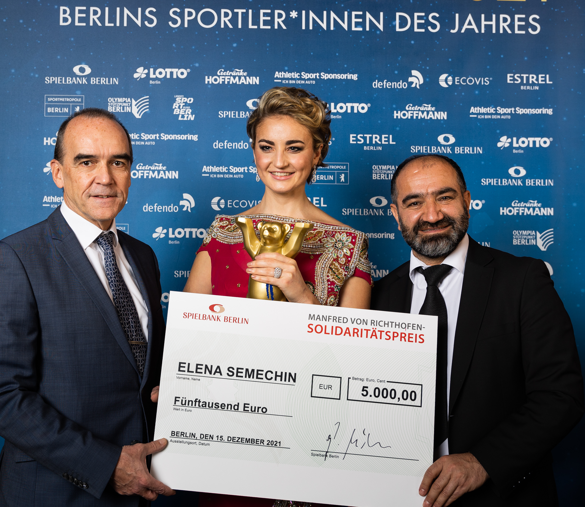 Gerhard Wilhelm, Sprecher der Geschäftsführung der Spielbank Berlin, die Elena Semechin seit vielen Jahren unterstützt, betont in seiner Laudatio, dass das gesamte Team der Spielbank Berlin stolz darauf ist, die Ausnahmeathletin bei ihrer sportlichen Karriere begleiten und unterstützen zu dürfen.