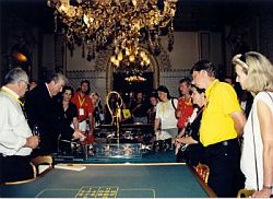 p> Nahezu 200 Ferraristi waren der Einladung zu einem Empfang in der Spielbank Baden-Baden gefolgt, der jedoch aufgrund der großen Hitze nicht wie vorgesehen im Mosaikhof stattfand, sondern an die angenehm klimatisierte Bénazetbar verlegt wurde.