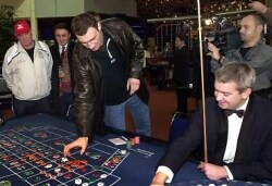 Vitali Klitschko am Tag vor seinem grossen Kampf in Deutschland grösster Spielbank, dem Casino Hohensyburg/Dortmund. Mit hervorragender Führhand platzierte er die Jetons und gewann auf der 7.