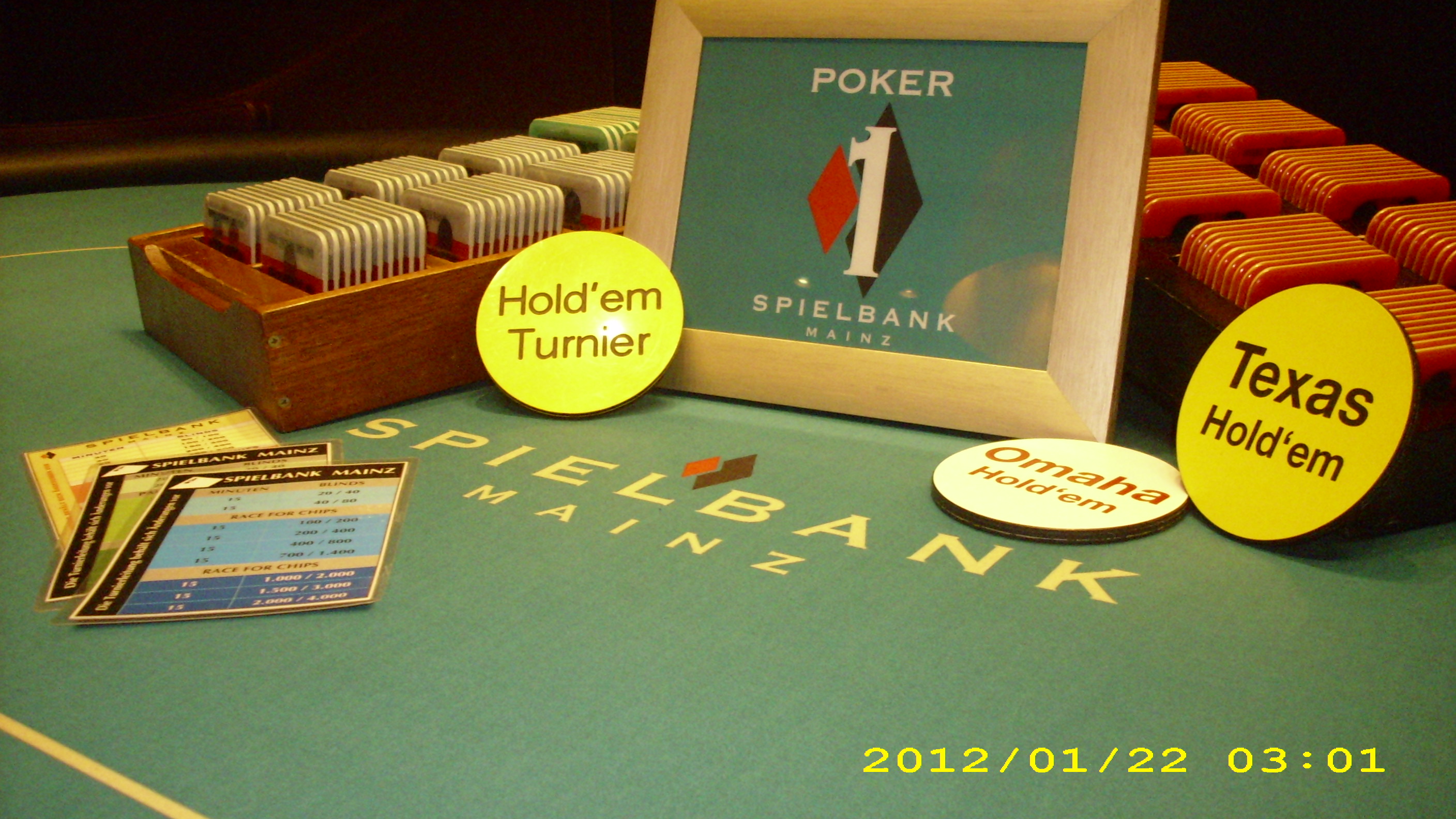 Einundvierzig Teilnehmer kamen am Freitagabend zum Texas Hold’em Freeze-Out Pokerturnier in die Spielbank Mainz. Pünktlich um 20.00 Uhr wurde gestartet. Schon um kurz nach halb Elf begann das Finale bei dem die Blindphasen um zehn Prozent verlängert wurden, sehr zur Freude aller Gäste. Die vier Preisgeldränge sind bis einschließlich Heads-up ausgespielt worden und so dauerte das Finale über zweieinhalb Stunden.