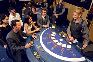 2 Black Jack Tische eröffneten und die Kartenspieler machten ihre Einsätze und setzten eifrig auf die zusätzlichen Chancen, die das „Casino Admiral“ ihnen bei diesem Spiel anbietet. Bei der richtigen Vorhersage, dass der Spieler einen „Black Jack“ erhält, bekommt er zusätzlich das 19fache seines Einsatzes ausgezahlt. Auch hier zeigen Permanenztafeln dem Gast die letzten 20 Spiele an und ermöglichen ihm so, den Spielverlauf eines Tisches zu verfolgen.