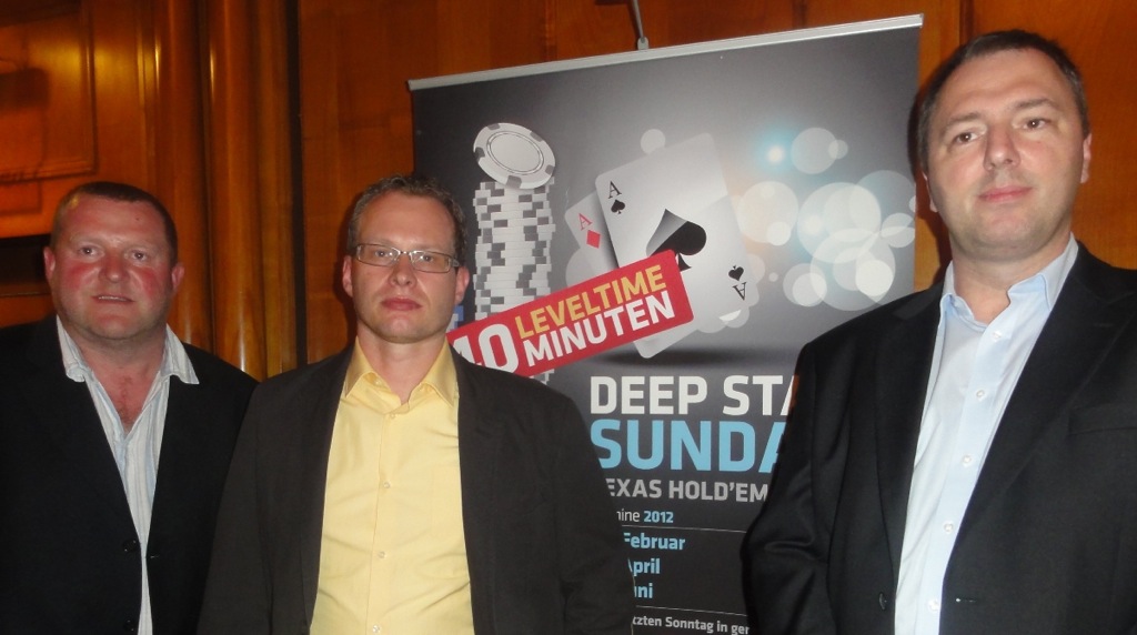 Beim Turnier hatte Thomas Froschauer die Nase vorn, der sich um kurz vor 2 Uhr den Löwenanteil des Preisgeldes nach Chipcount mit Tony Cable und Heinz Laufenberg teilte.